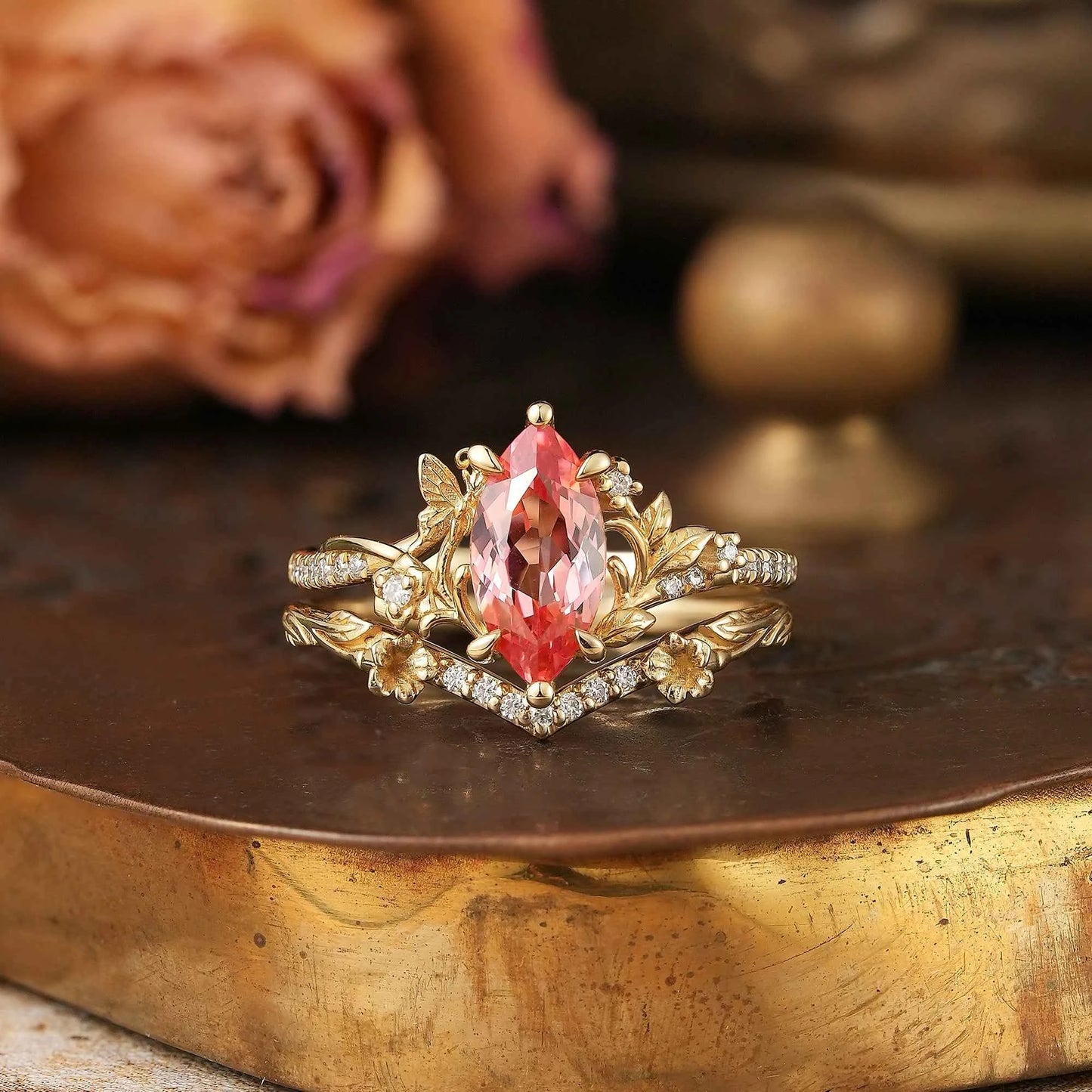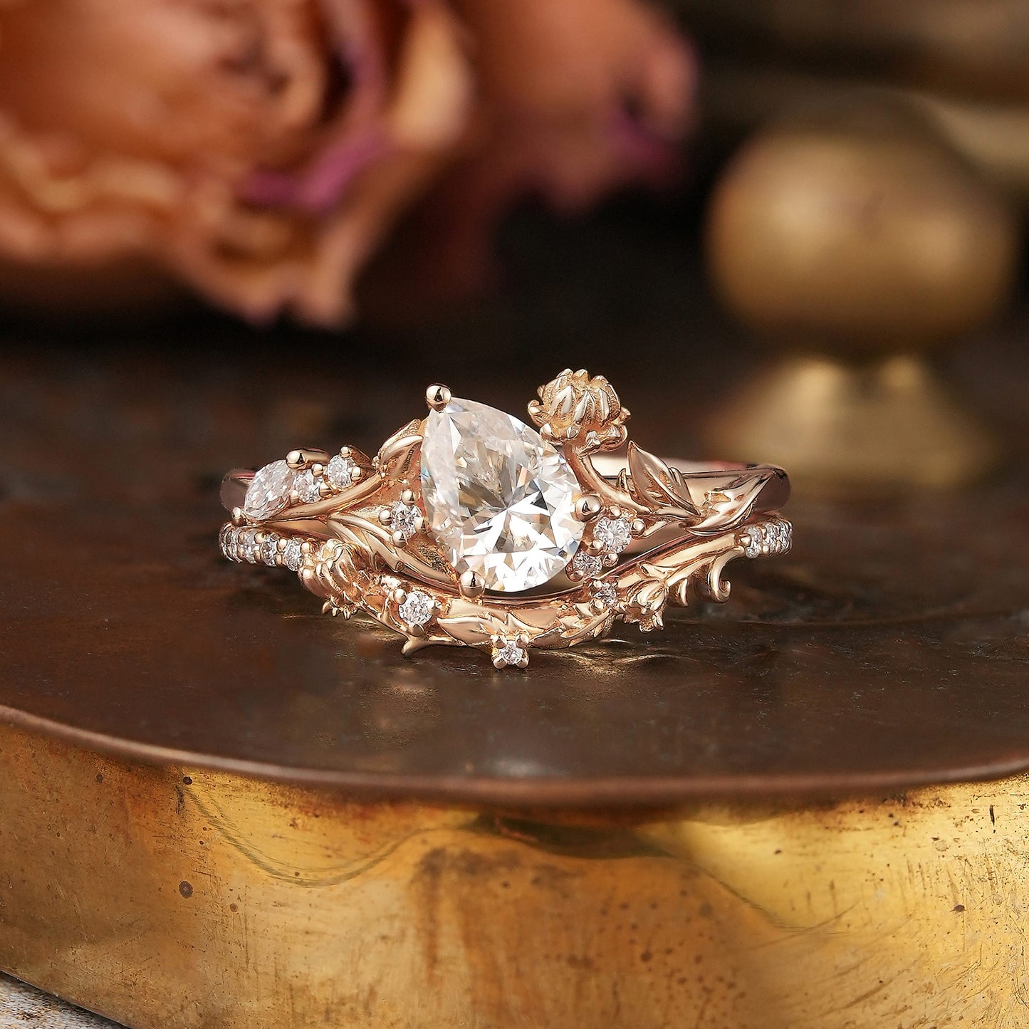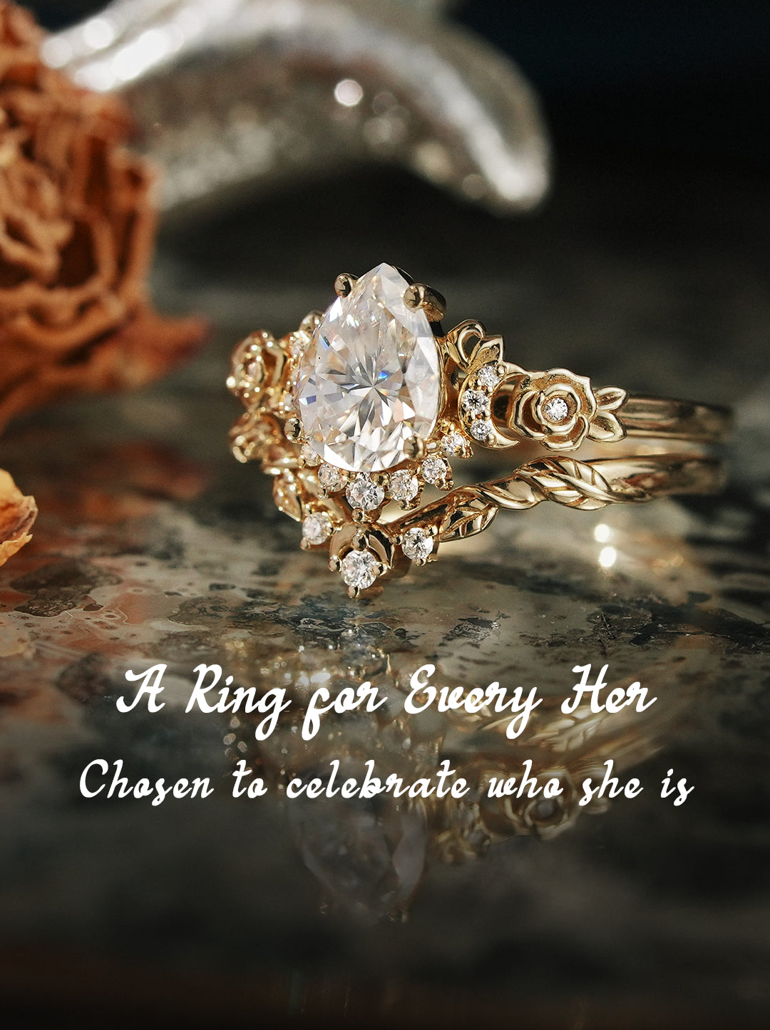 I fell in love the moment I opened the box — it is so vibrant, and the delicate leaf and flower details make this bridal set feel romantic, unique, and perfectly symbolic of our love. Our wedding photographer captured some absolutely stunning photos for us — hope this helps! You can totally trust this jewelry store.