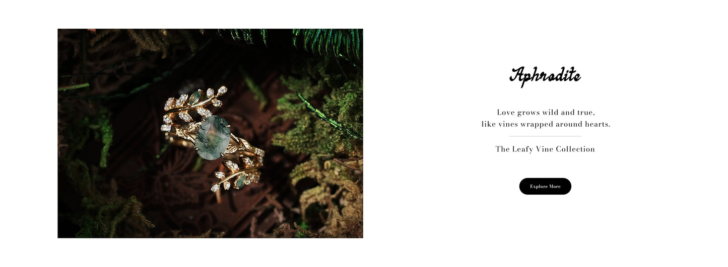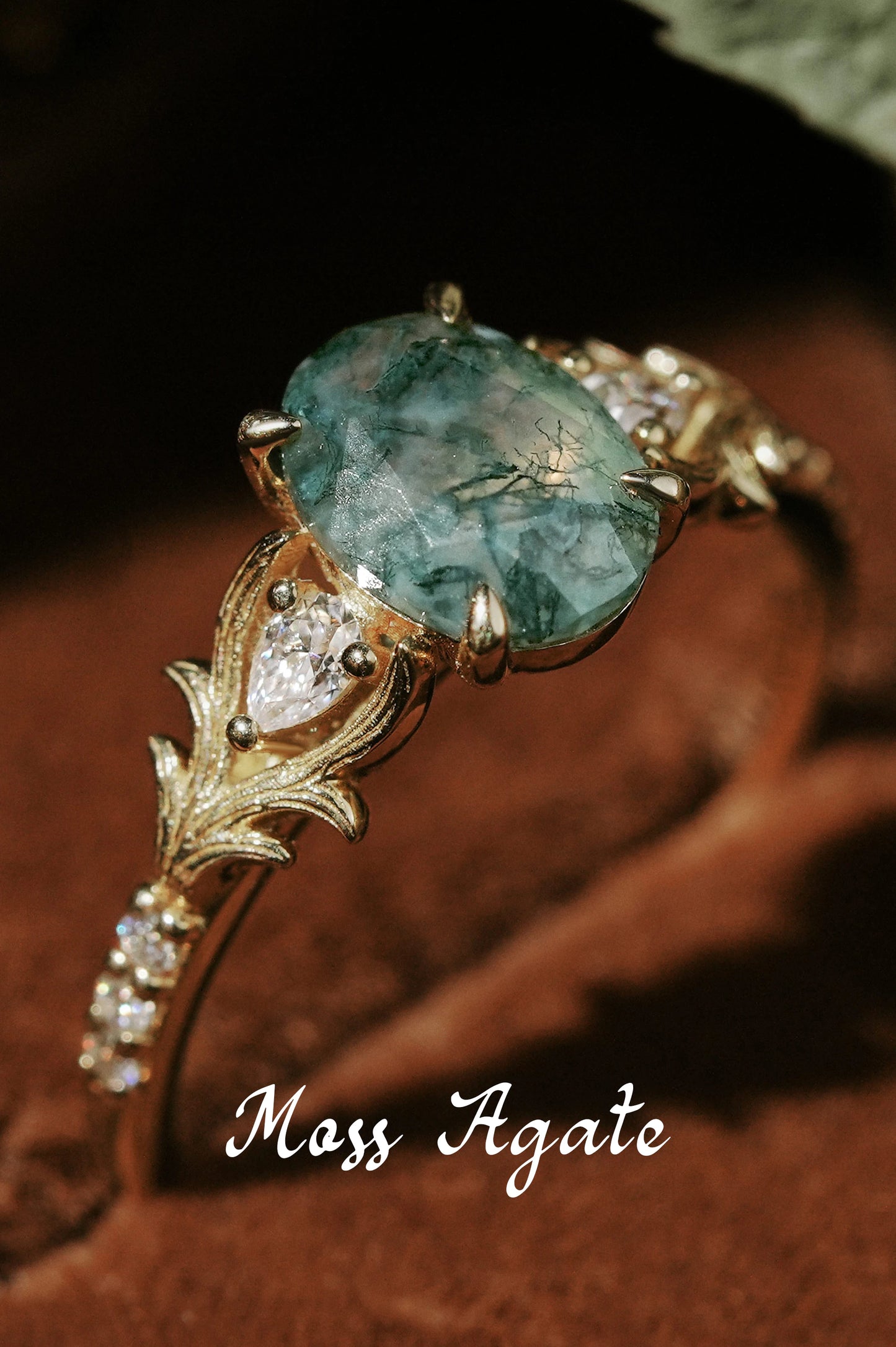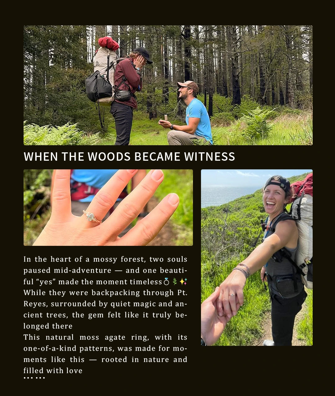 We planned a nature-inspired wedding, so I really wanted a ring that felt organic and meaningful instead of something too traditional. My husband chose a moss agate center stone, and the moon and leaf design is absolutely perfect for our theme. It’s even more beautiful in person and feels really special to me. I’m beyond happy with it! Recommended!