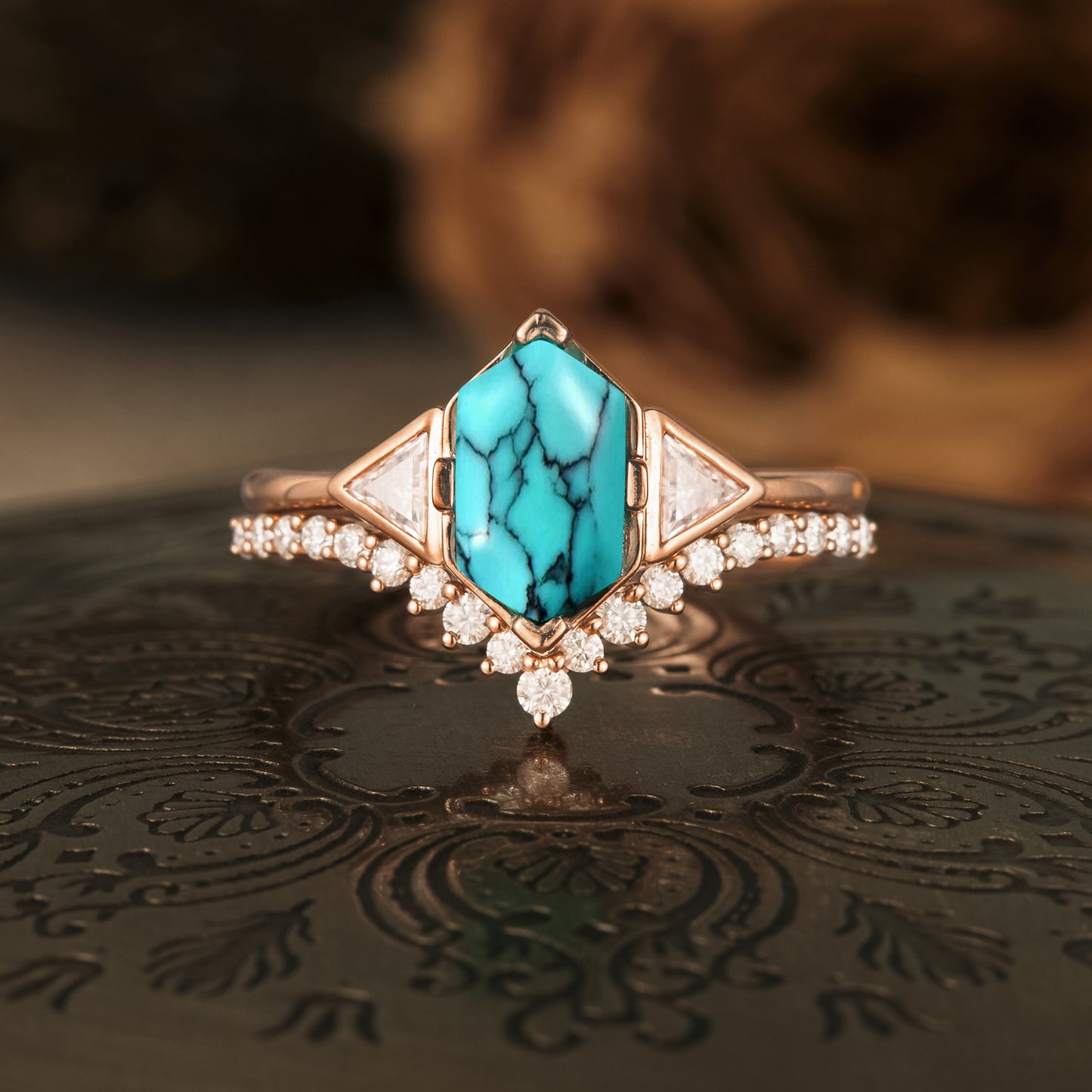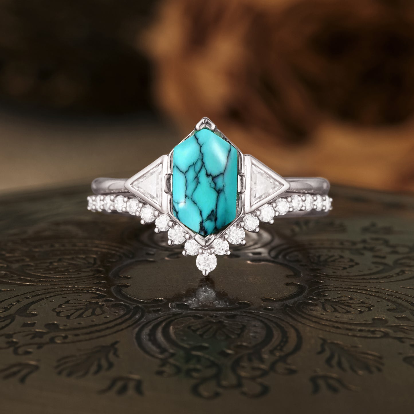 Boho Turquoise Engagement Ring Set 2pcs - GemsMagic