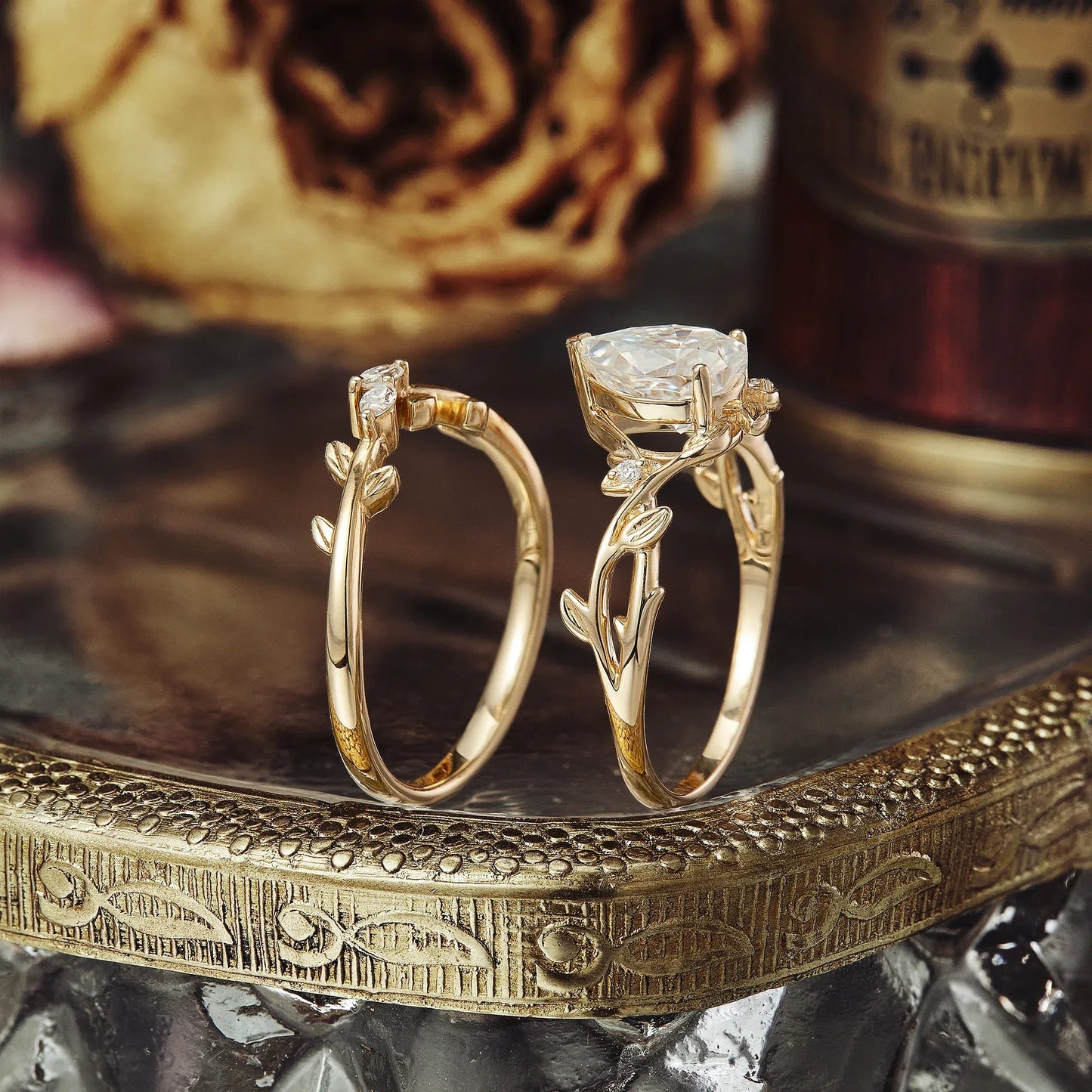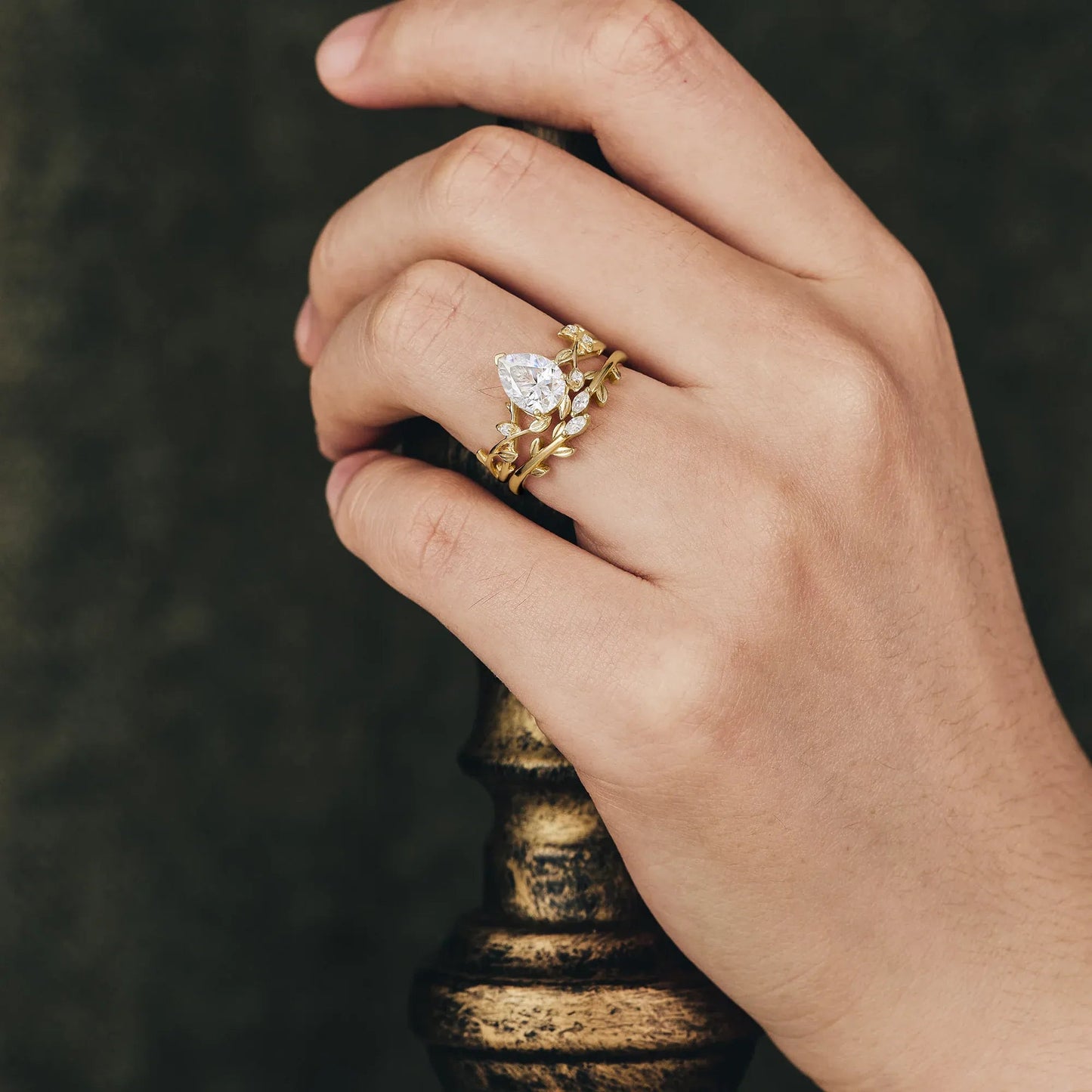 Pear Cut Moissanite Twisted Leaf Engagement Ring Set 2pcs - GemsMagic