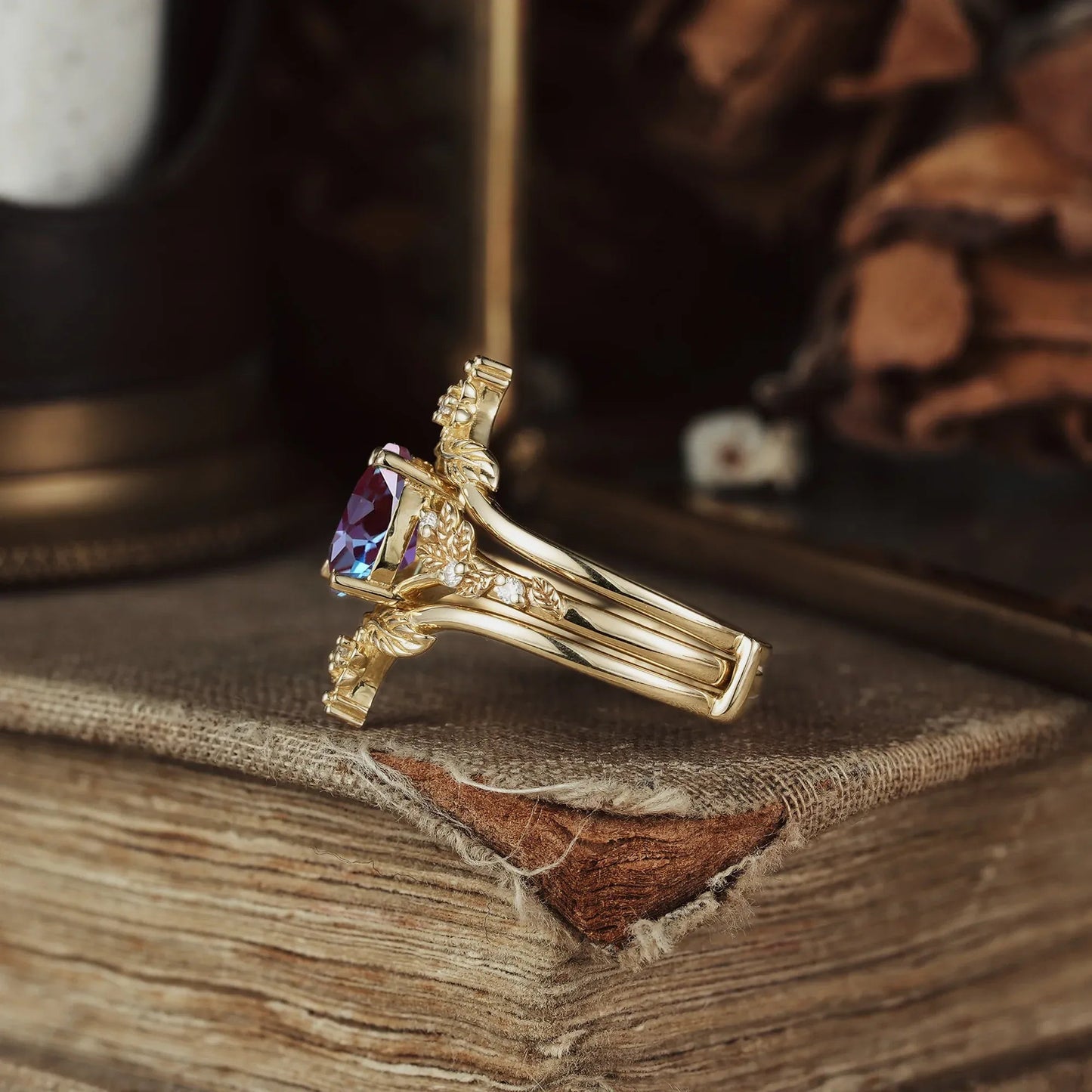 Leaf and Flower Elegance: The Alexanderite Ring Set | Victoria