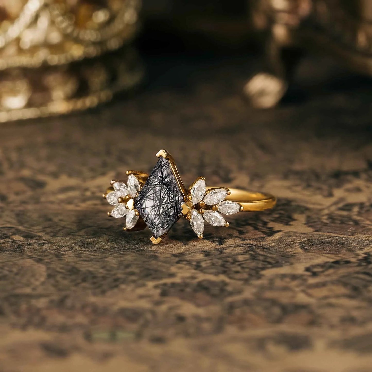 Unique Kite Shaped Black Rutilated Quartz Engagement Ring - GemsMagic