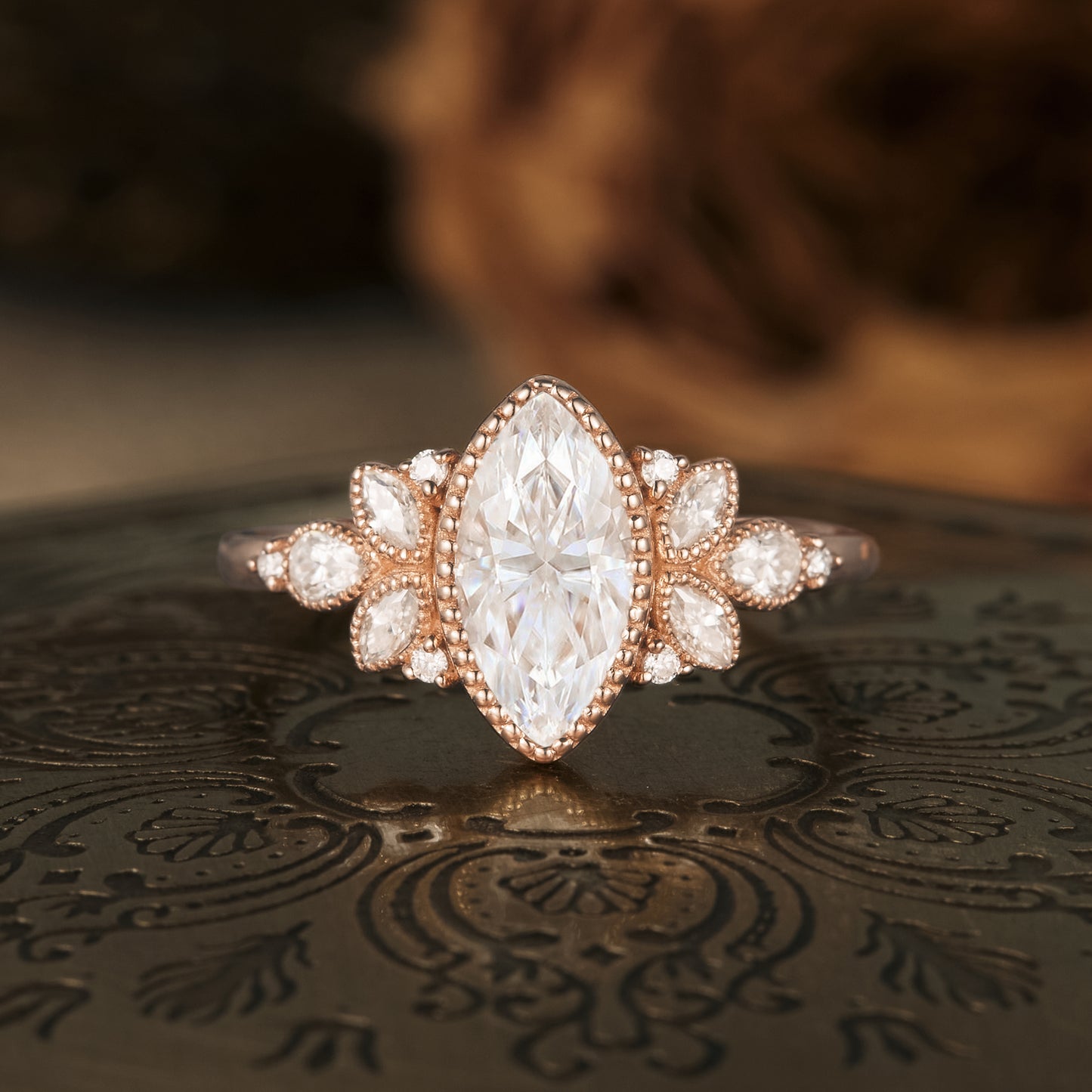 Marquise Moissanite Vintage Halo Engagement Ring - GemsMagic