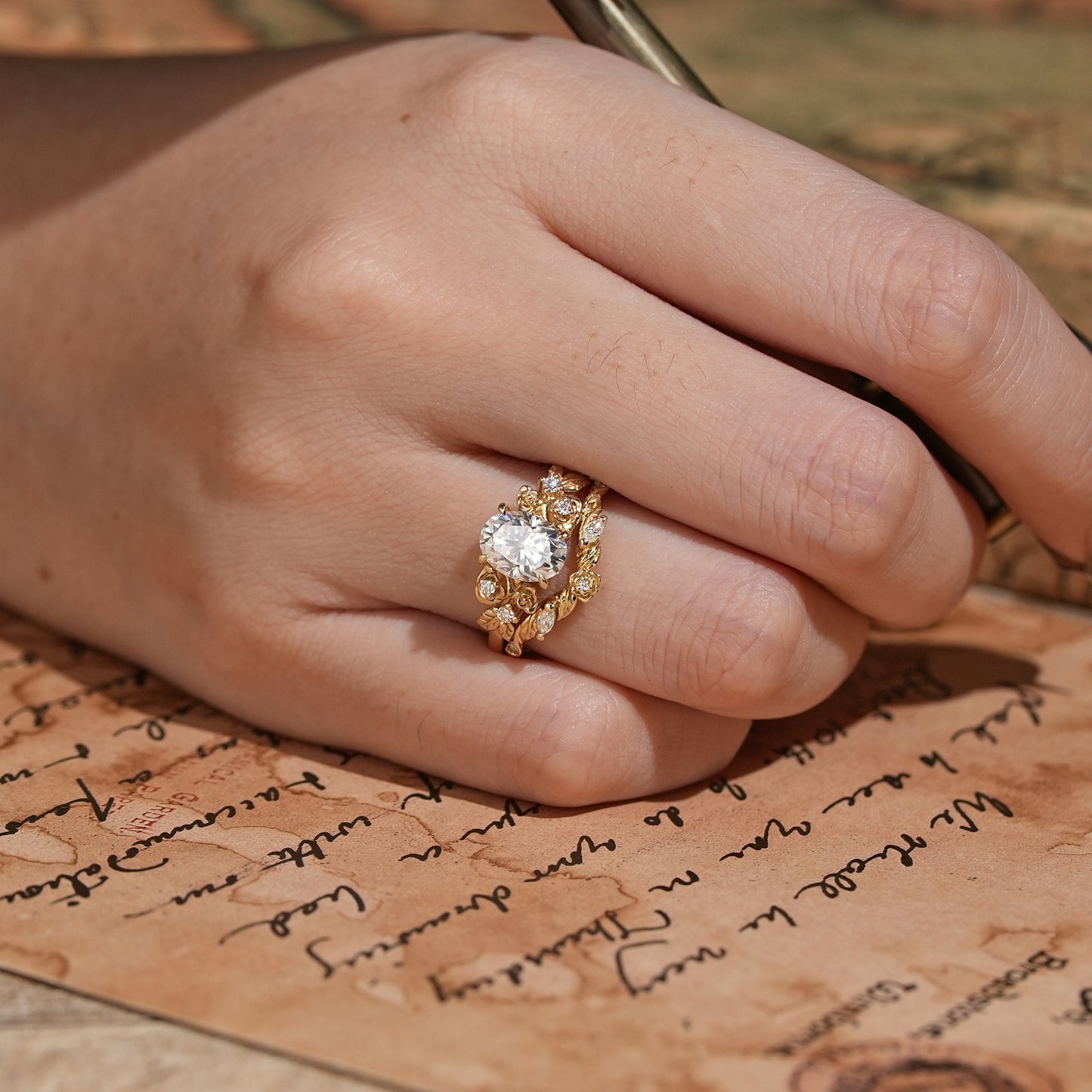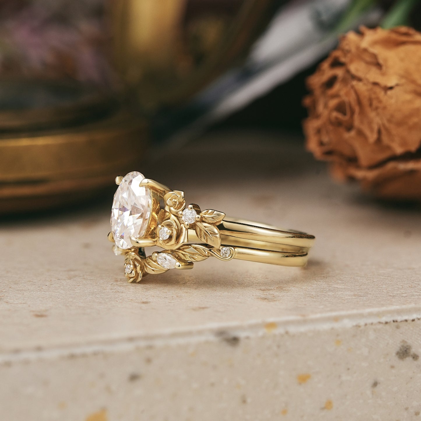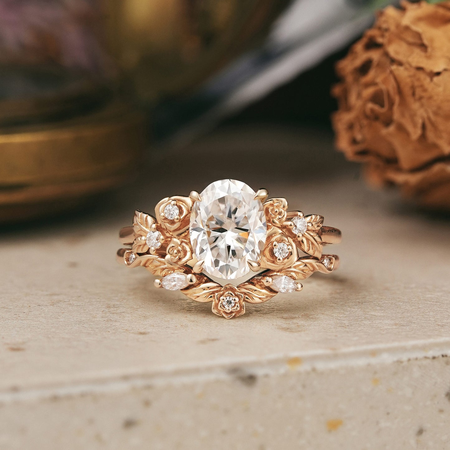 Rose Inspired Oval Cut Moissanite Flower Bridal Ring Set - Donna