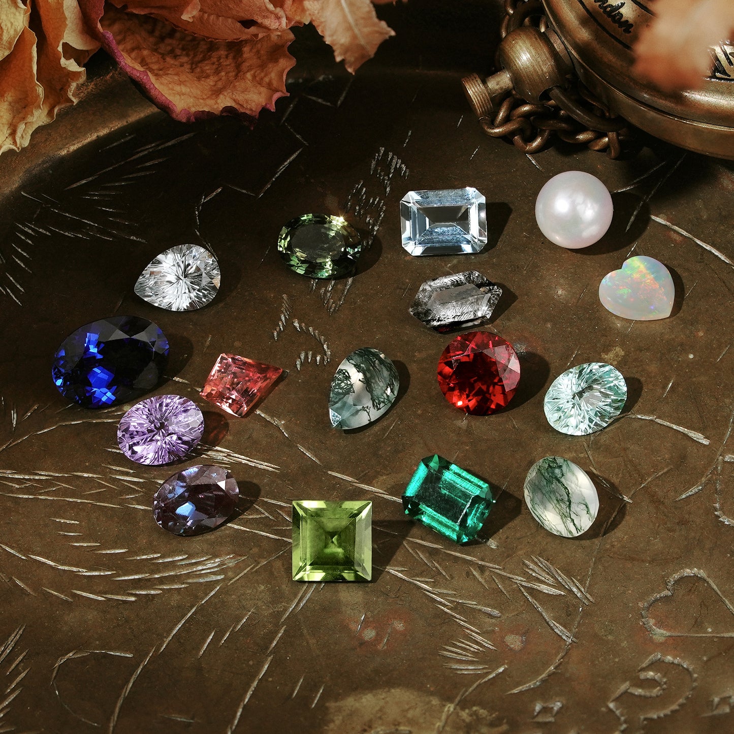 Select from an extensive collection of fine gemstones, including Alexandrite, Ruby, Multi-colored Sapphires, Morganite, Black Onyx, and more.