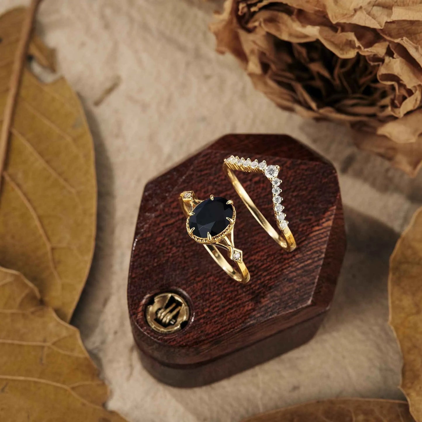 Vintage Black Onyx Ring Set 2pcs - GemsMagic