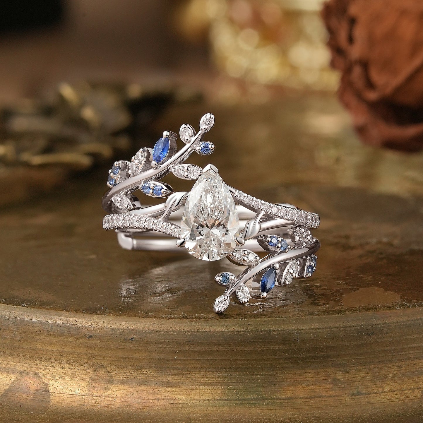Aphrodite's Enchanted Vine| Lab Grown Diamond and Sapphire Ring Set - Aurora | GemsMagic