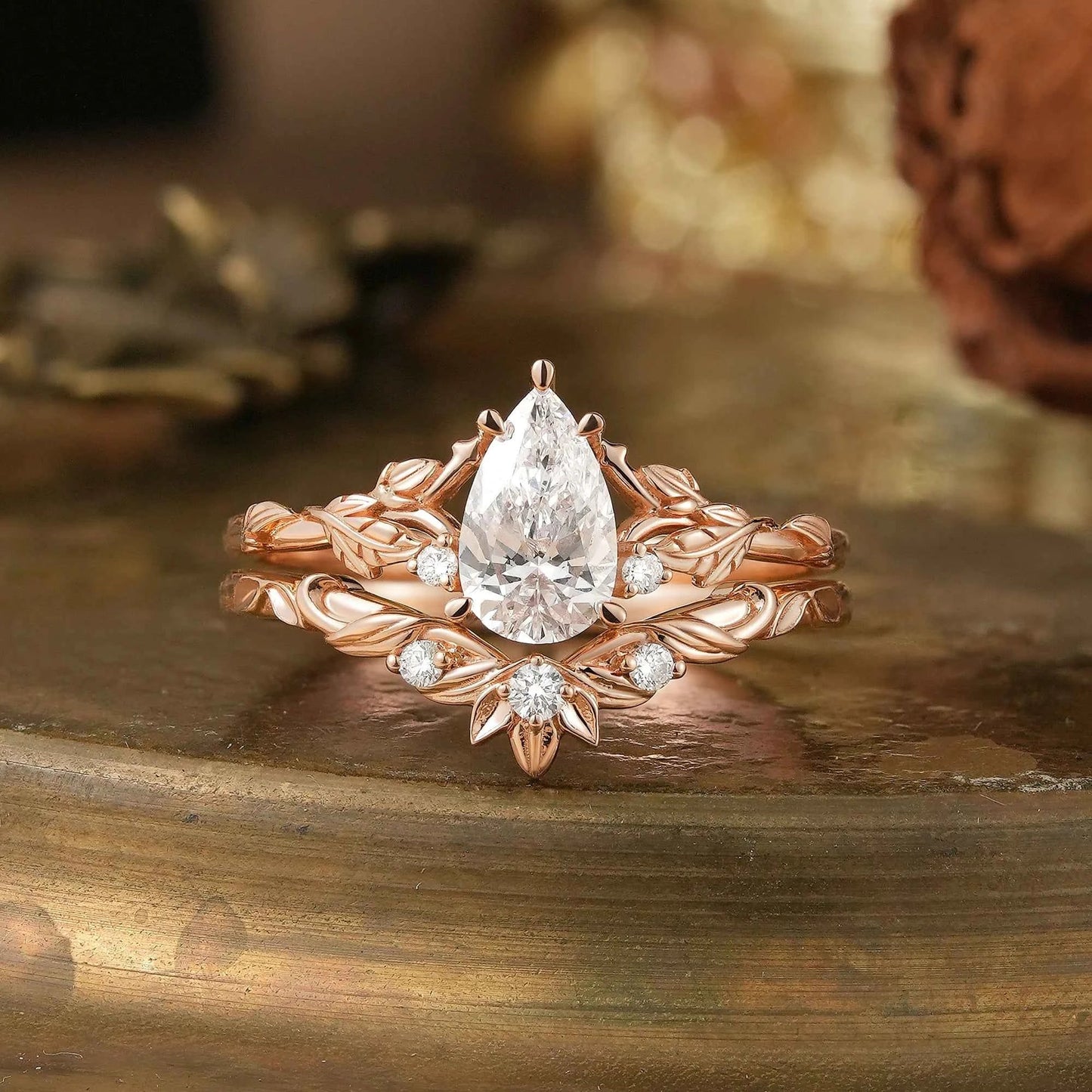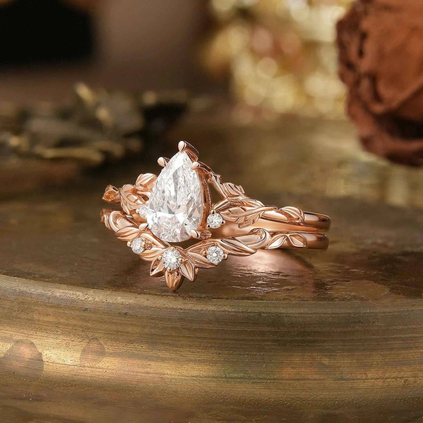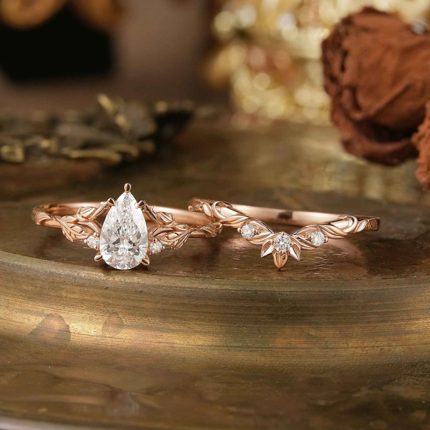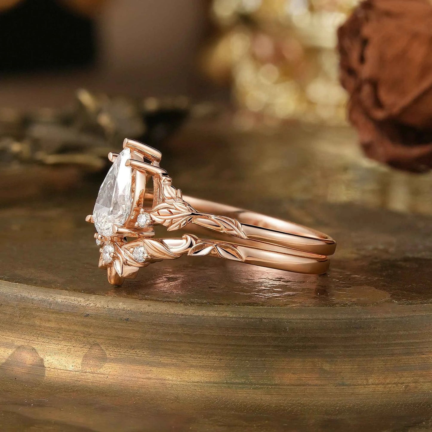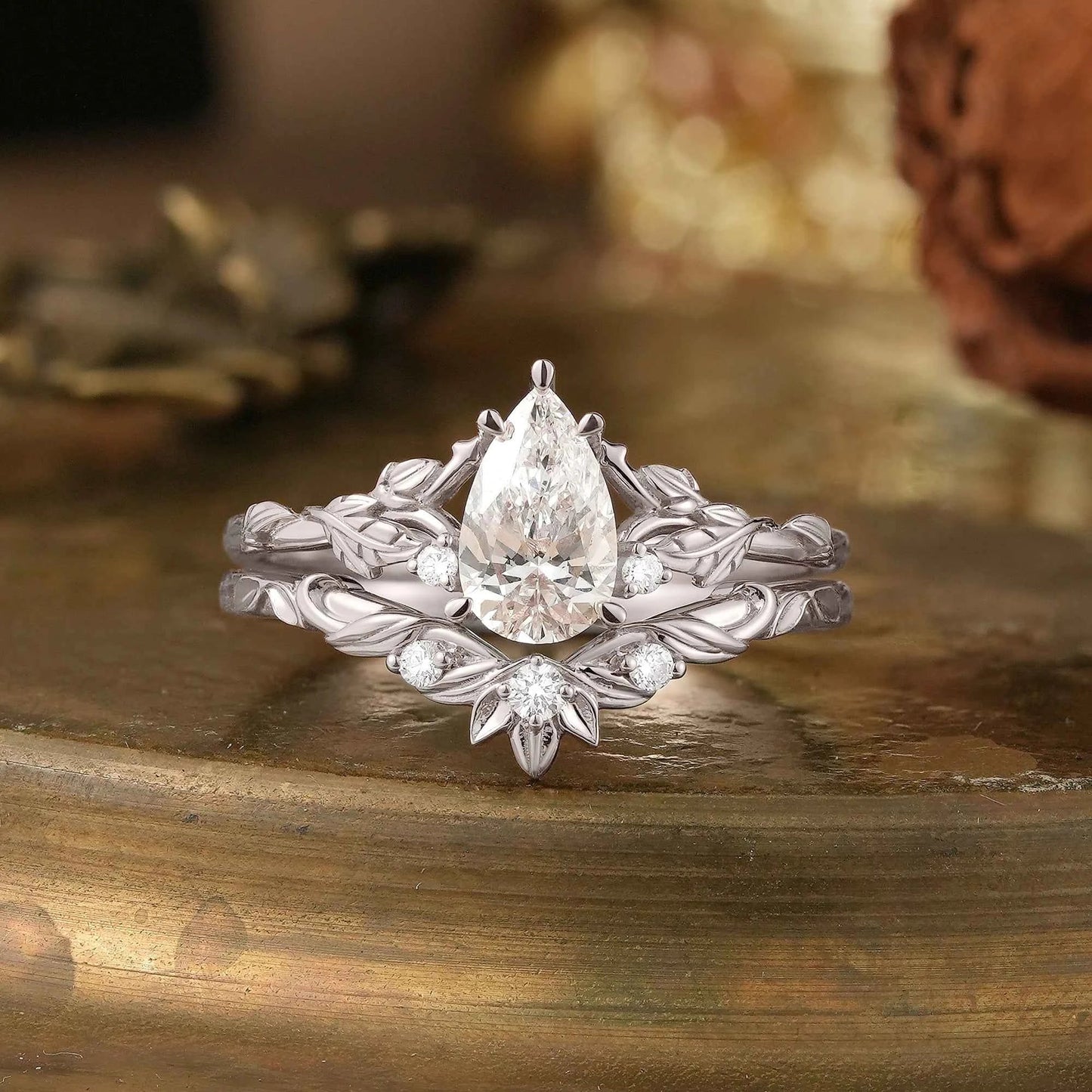 Pear Cut Lab Grown Diamond Leaf Bridal Ring Set - Bonnie | GemsMagic