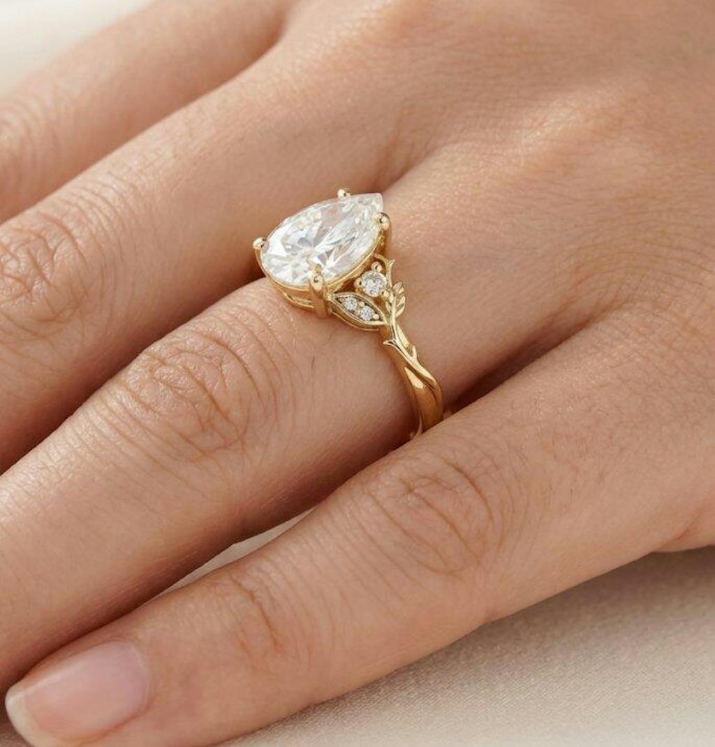 Pear Moissanite Leaf And Vine Inspired Engagament Ring | GemsMagic