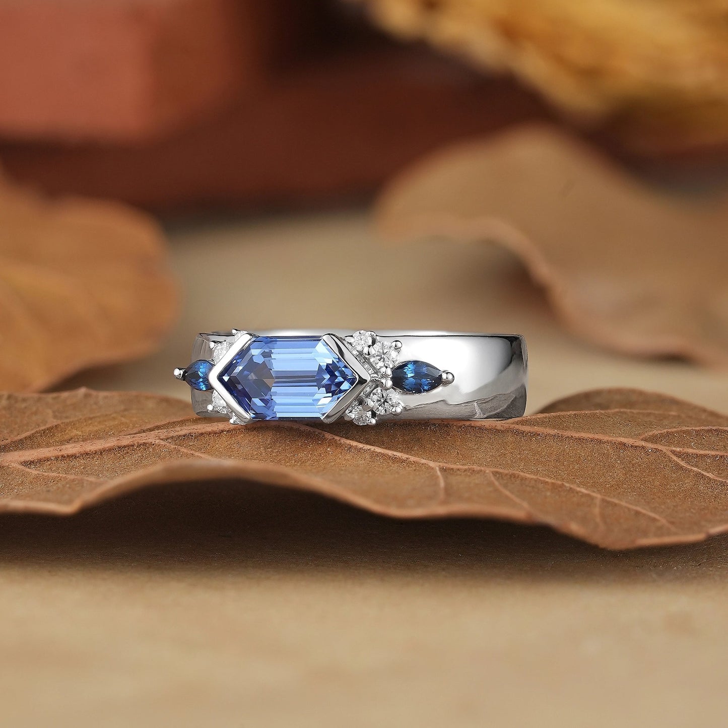 5x9mm Long Hexagon Cocktail Sapphire Cluster Men's Band-Noah