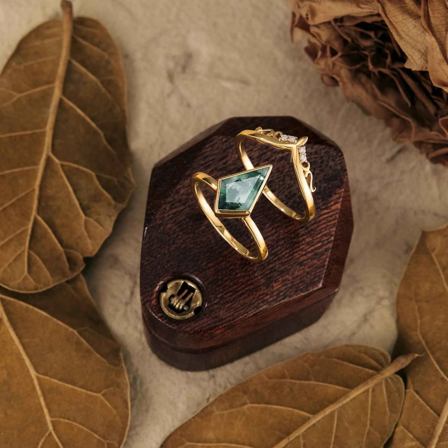 Bezel Kite Cut Moss Agate Ring Set 2pcs - GemsMagic