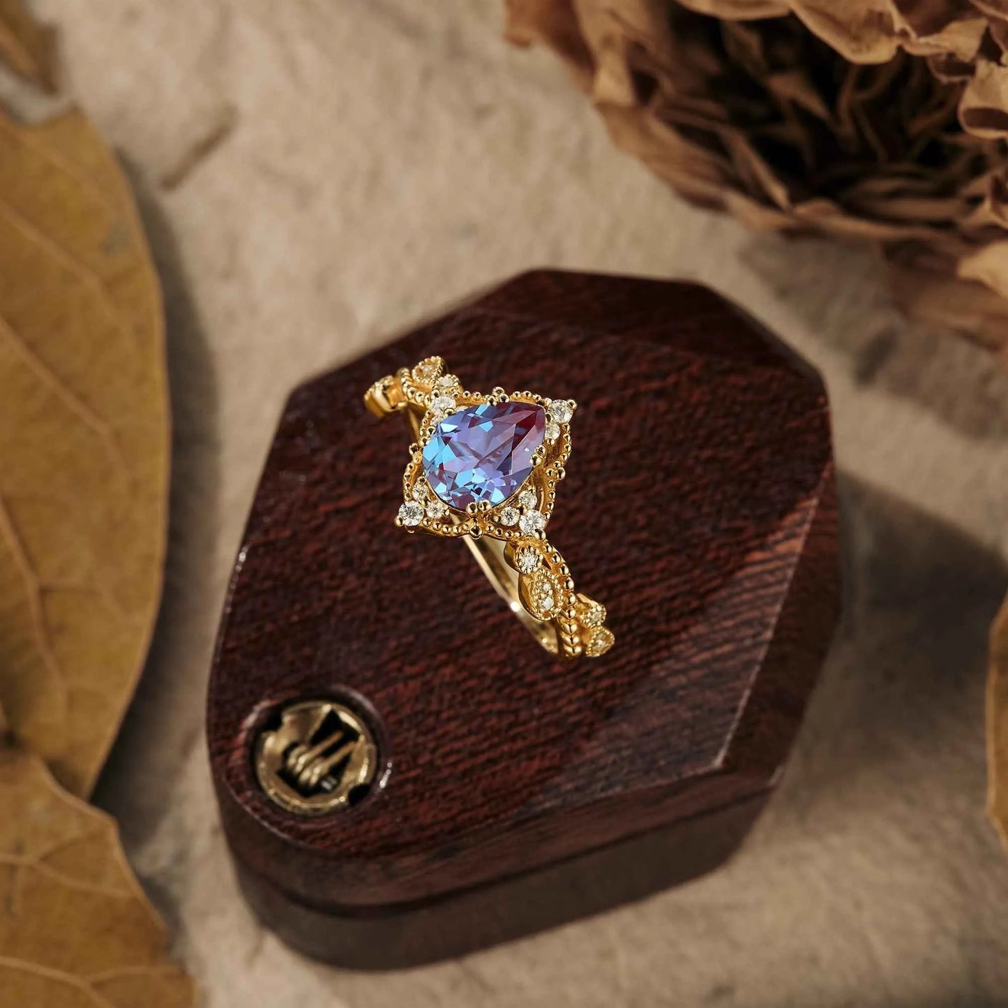 Pear Cut Alexandrite Twisted Engagement Ring - GemsMagic