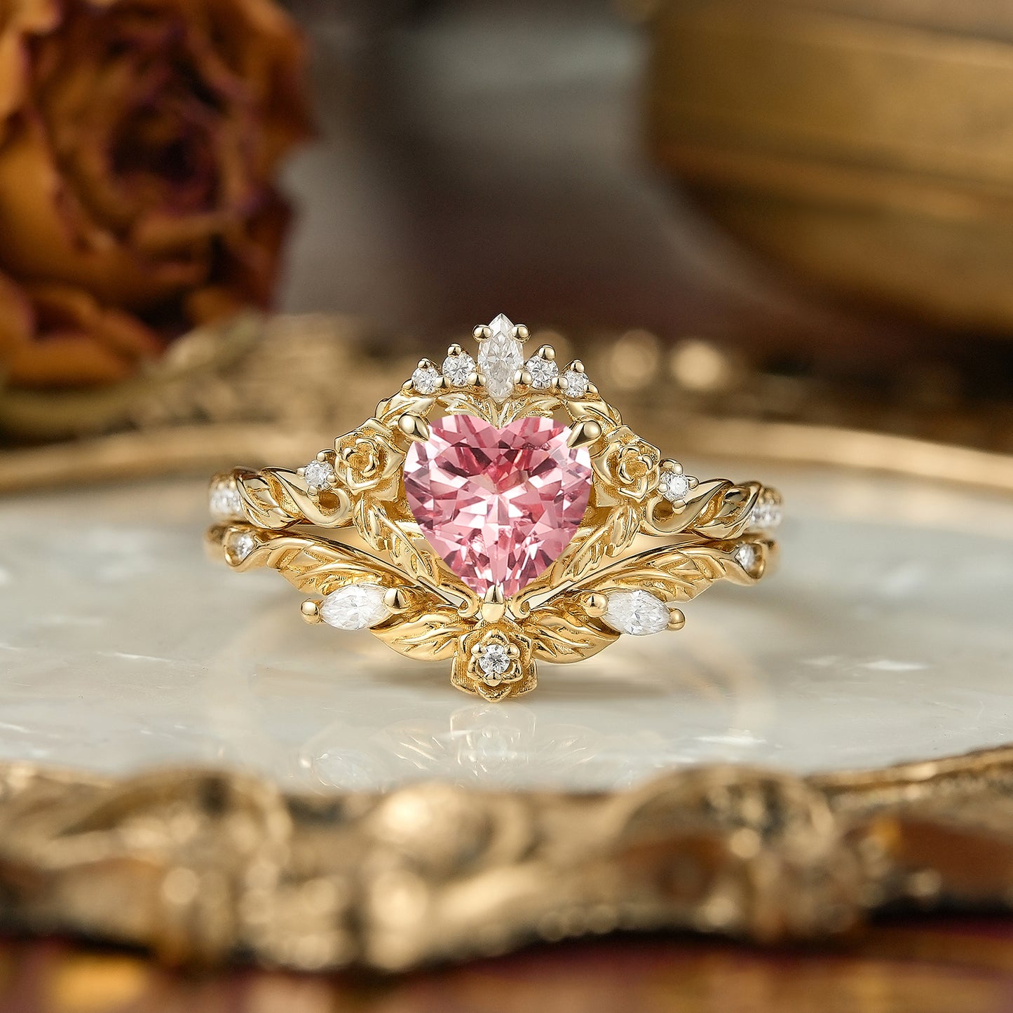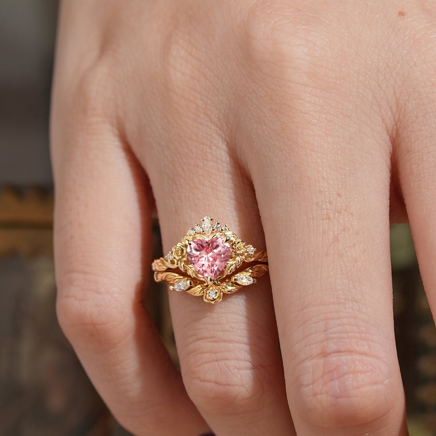 Aphrodite's Enchanted Vine | A Mythical Heart Shaped Sparkle Cut Padparadscha Engagement Ring Set from $1,839.30
