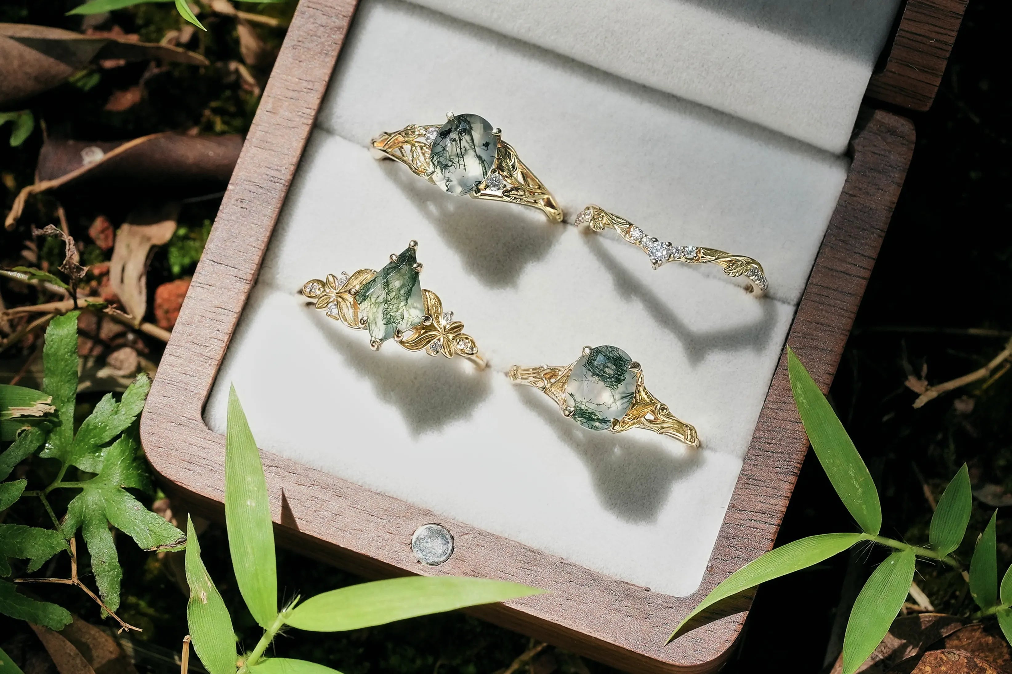 Discover the enchanting allure of our Moss Agate Ring Collection, where each piece is a celebration of nature's artistry. Featuring the mesmerizing patterns and serene hues of moss agate, these rings are a perfect blend of elegance and tranquility. Whether you’re seeking a statement piece or a subtle accent, our nature-inspired moss agate engagement rings offer timeless sophistication and a connection to the natural world.
