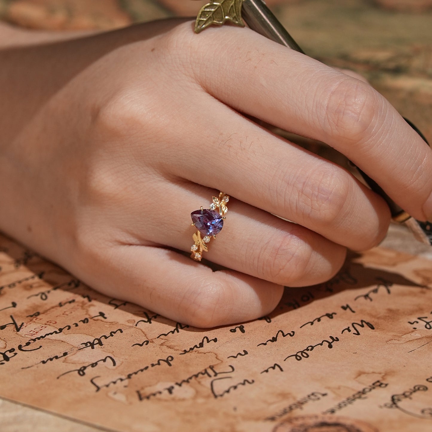 Pear Cut Alexandrite Nature Inspired Engagement Ring