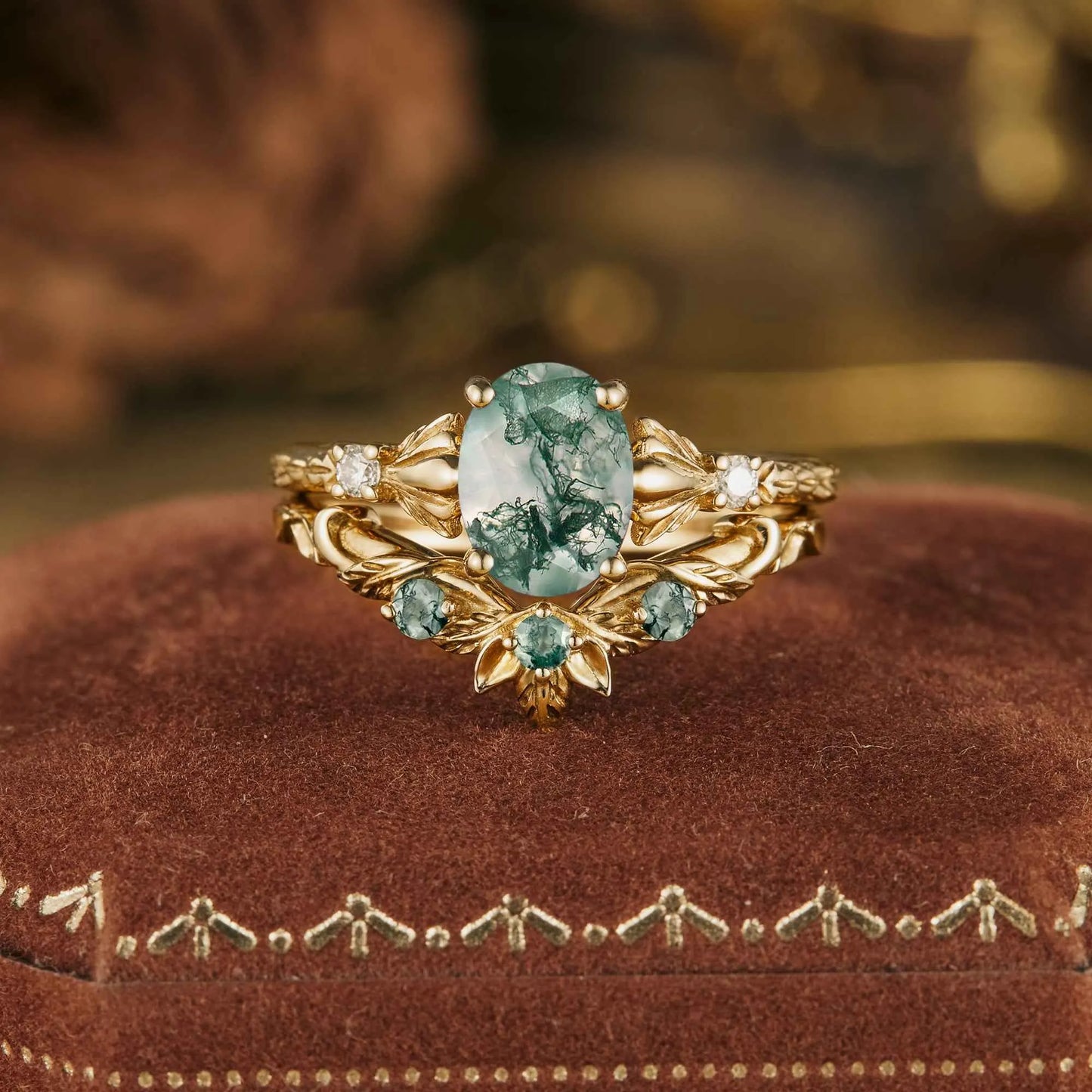 Clematis Inspired Moss Agate Ring Set 2pcs - GemsMagic
