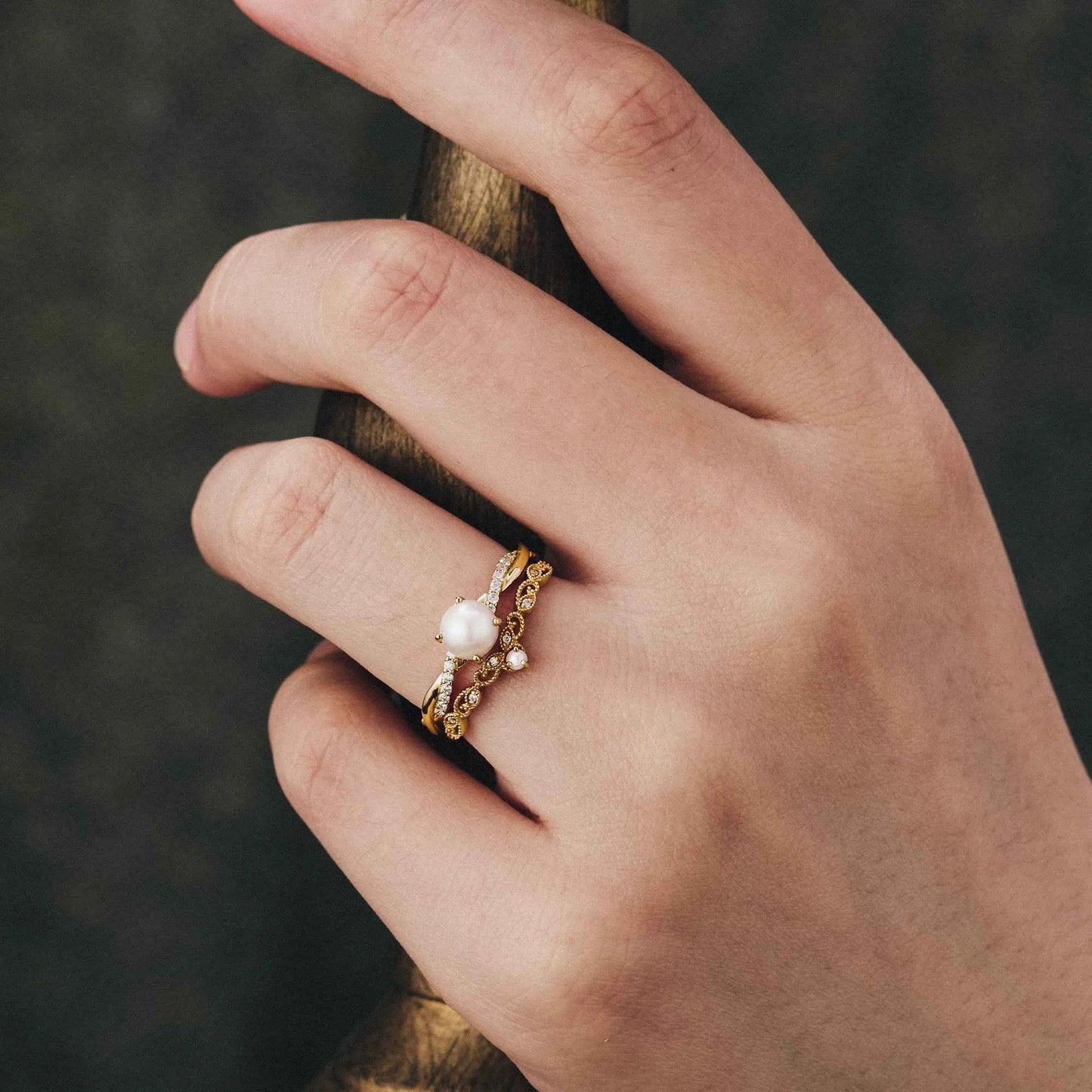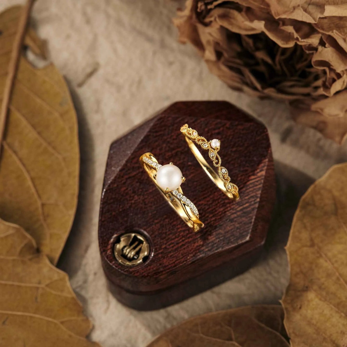 Graceful Pearl Engagement Ring Set 2pcs - GemsMagic