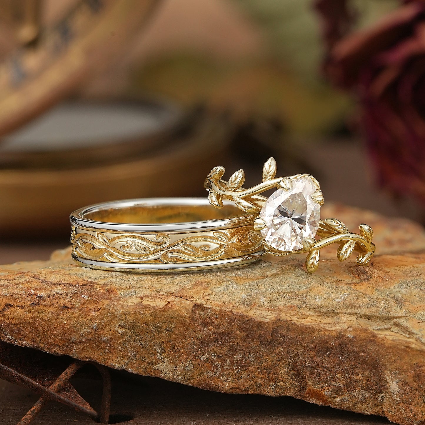 Together, these rings symbolize a love that grows like intertwined vines — unique, resilient, and rooted in shared wonder.