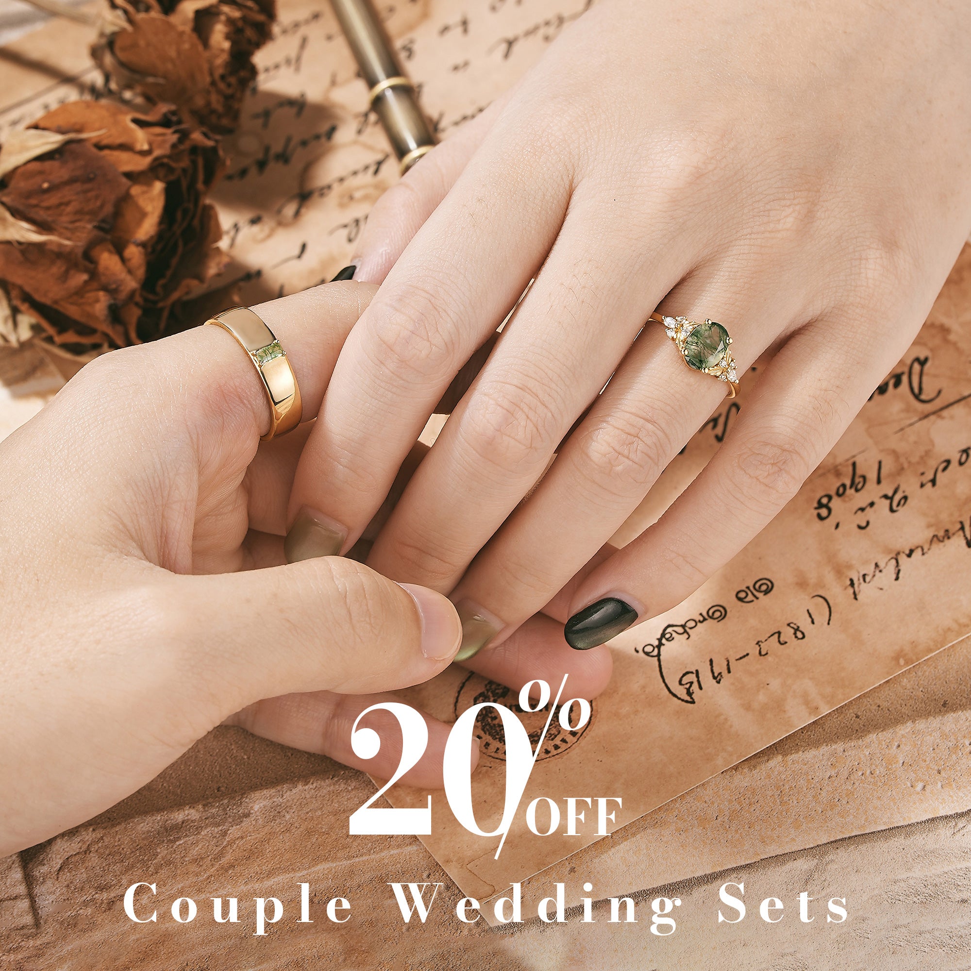 Sparkle Cut Green Sapphire Olive Branch Inspired Couple Ring Set - Rene & Bradley