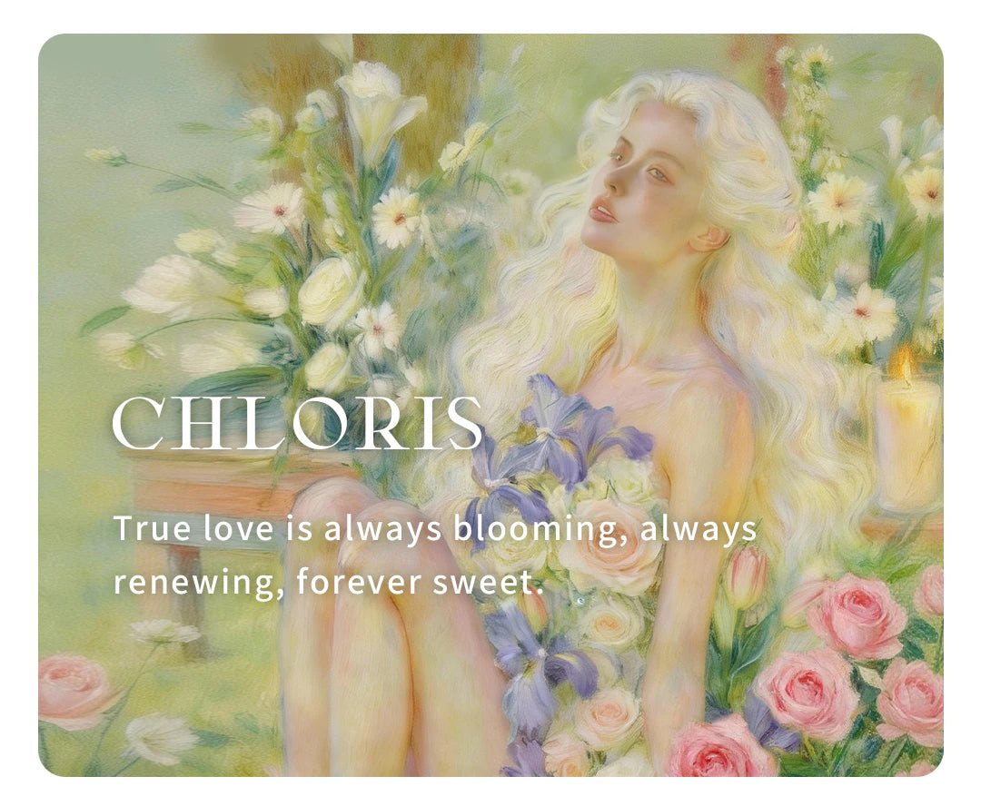 Inspired by the eternal spring of the Elven Garden, the Chloris collection celebrates love's perennial joy. Each blossoming motif represents a promise that continually unfolds, renewing its beauty and fragrance through every season of life together.