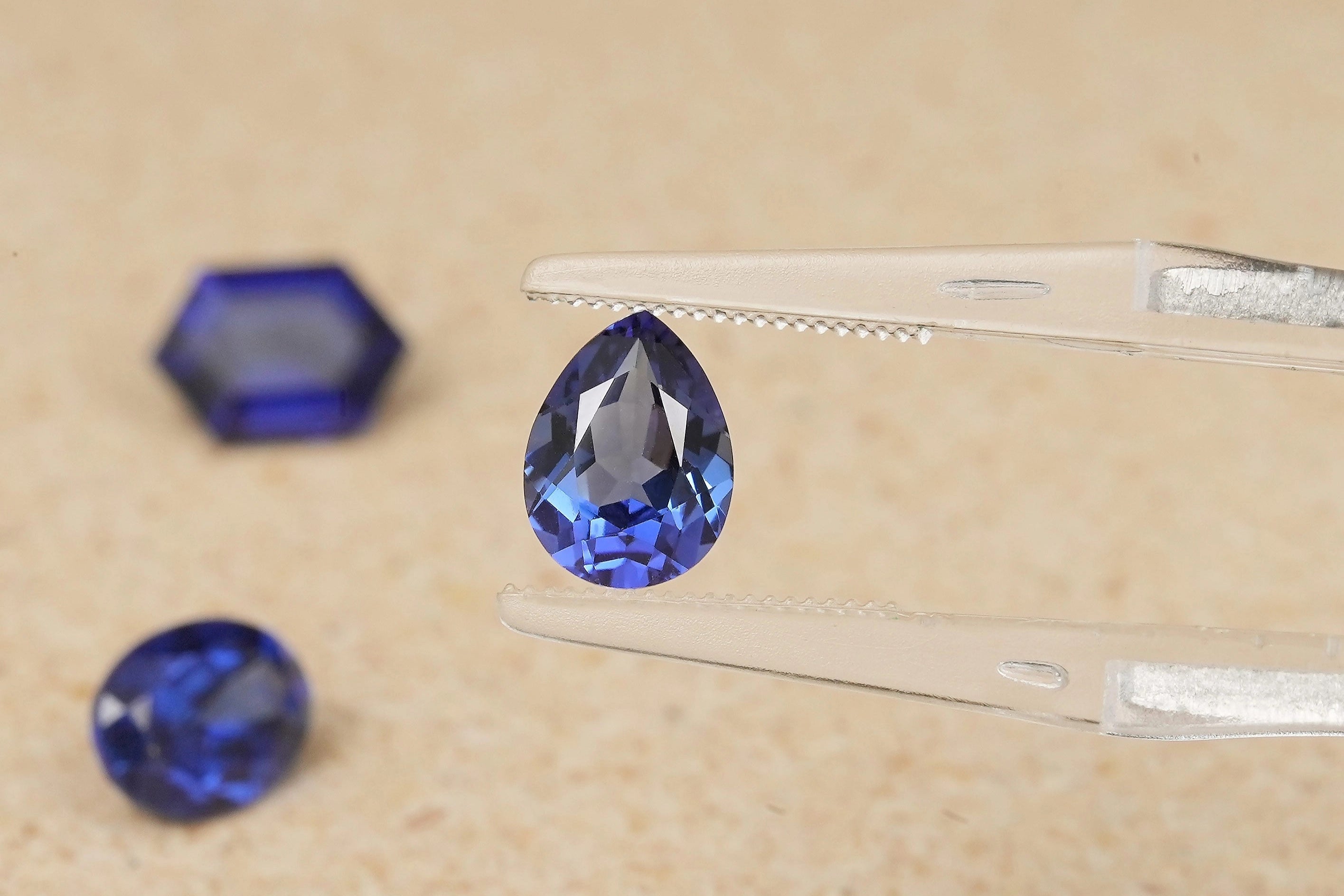 Deep, intense blue with high clarity and saturation (Mohs 9), exuding luxury and elegance.