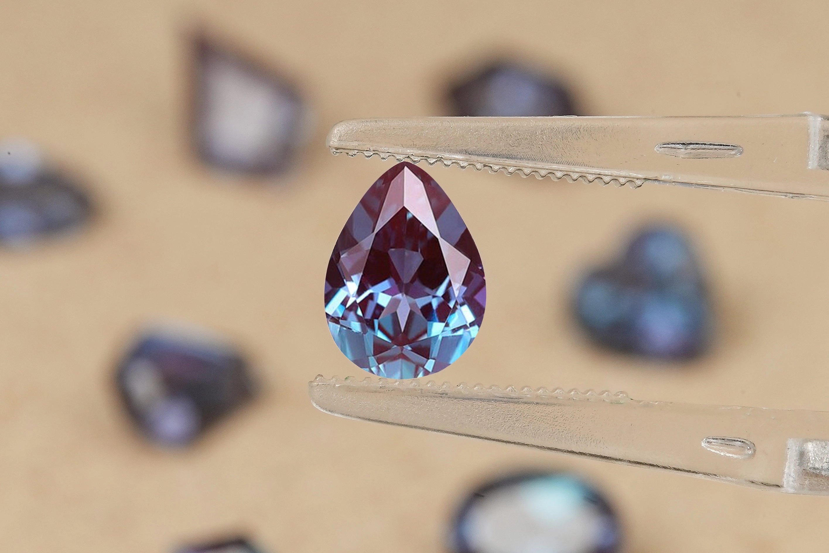 A rare variety of Chrysoberyl, is renowned for its remarkable color-changing ability. It appears bluish-green in daylight or fluorescent light, and shifts to purplish-red under incandescent or candle light.