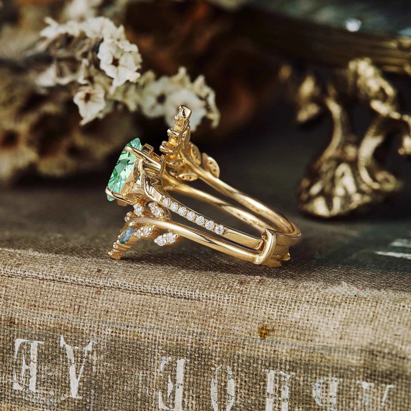 Aphrodite's Enchanted Vine | A Mythical Lab-Grown Green Diamond Engagement Ring Set